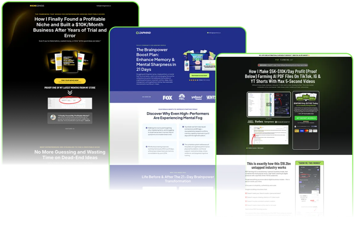 Multiple proven sales page templates that convert cold traffic into PDF buyers like clockwork.